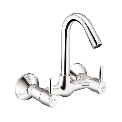 - Sink mixer (wall mounted) with 165 mm (6.5″) long swivel spout, connecting legs and wall flanges