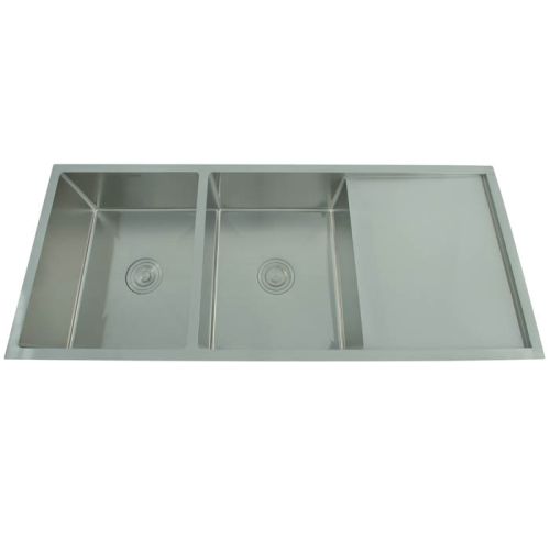 Futura Hand Made Kitchen Sink Double Bowl with drain 47 x 20 - BRUSH