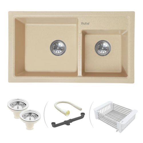Ruhe Quartz Double Bowl Kitchen Sink (31 x 18 x 9 Inches) - Sand Choco