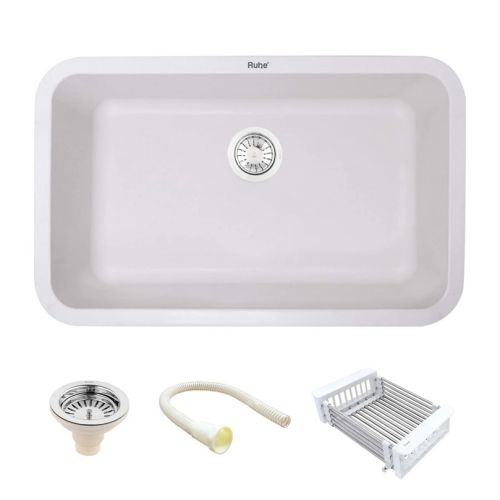 Ruhe Quartz Single Bowl Kitchen Sink (31 x 19 x 9 Inches) - Crystal White